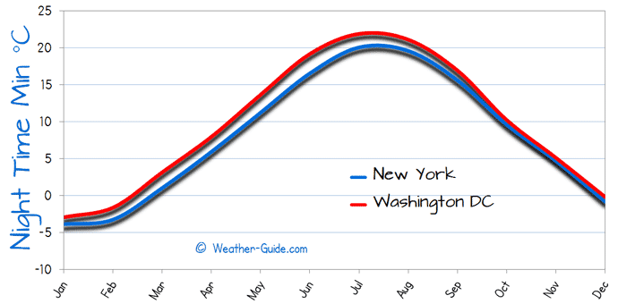 The following weather charts compare Washington DC’s weather against New York's weather.